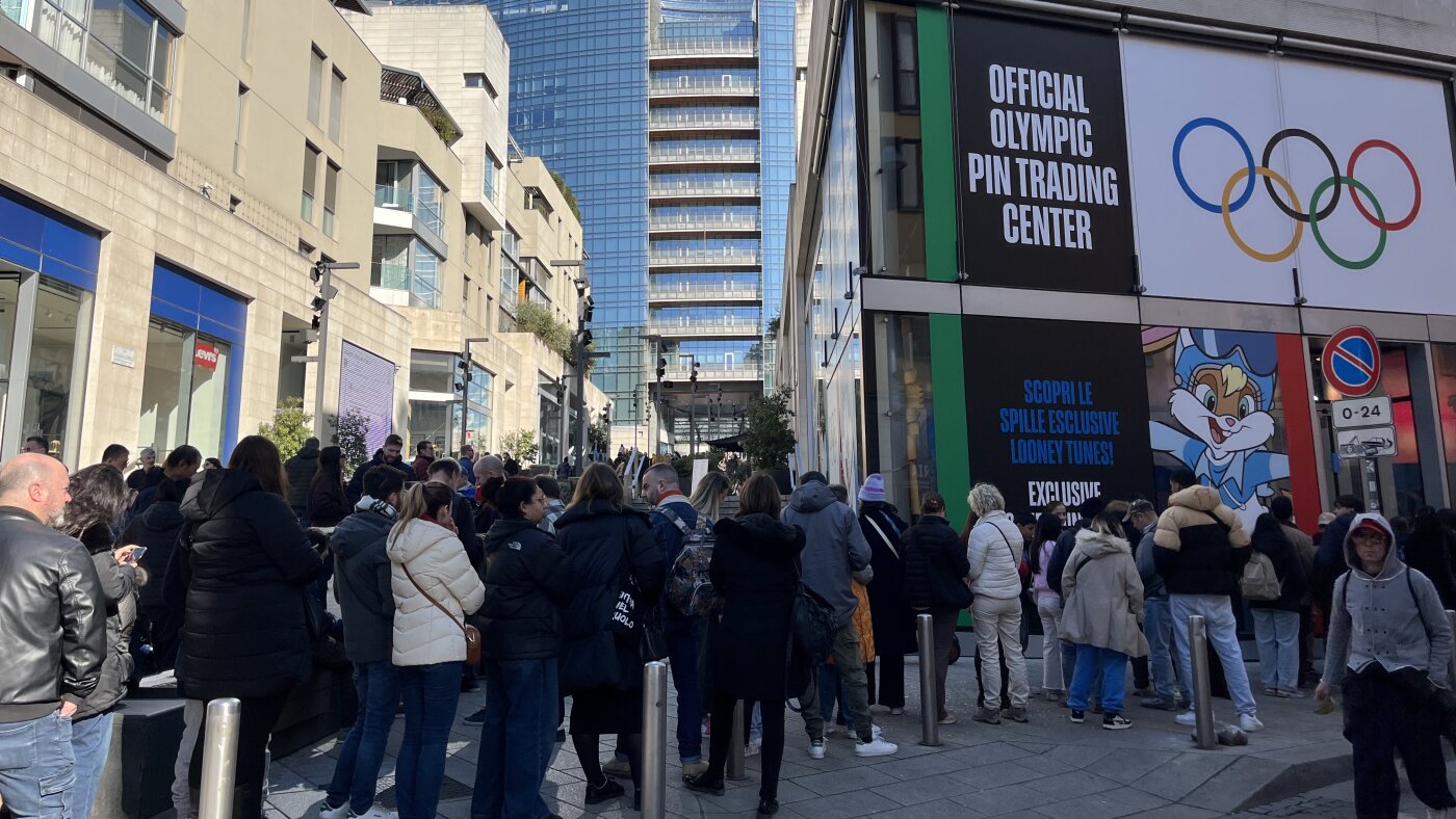 On a sunny Sunday morning smack-dab in the middle of the Winter Olympics, the line to enter Milan’s Official Olympic Pin Trading center was out the door and steadily growing.